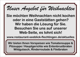 Sie bestellen bis 20.12.2026 Ihr Wunschessen und holen es gut verpackt bis 24.12.2025 / bis 13.00 Uhr ab.